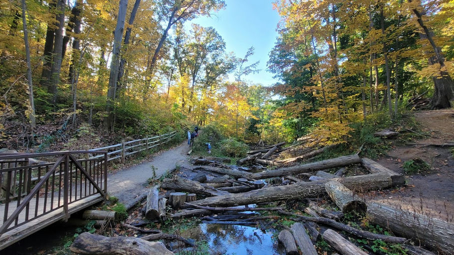 Park with tennis courts, a baseball diamond, a wading pool & a winter ice rink, plus a bandstand.