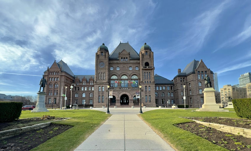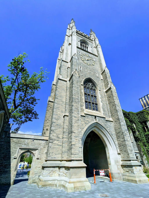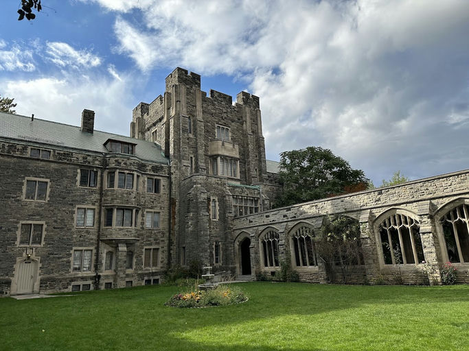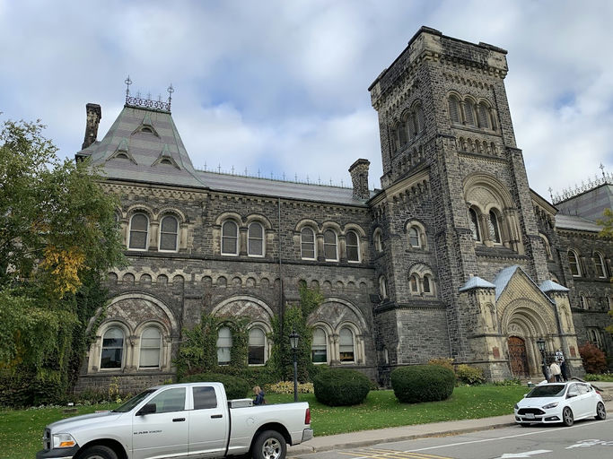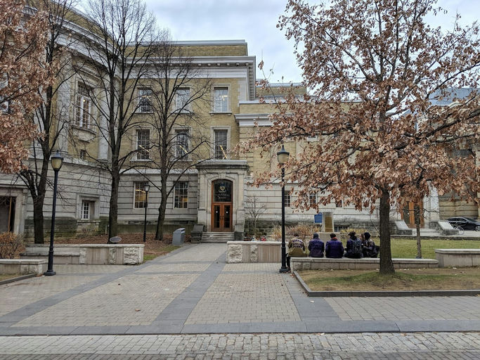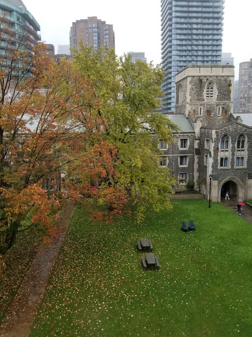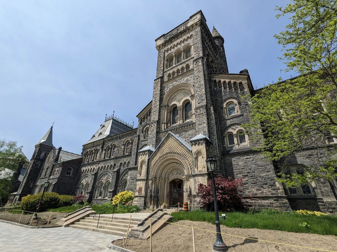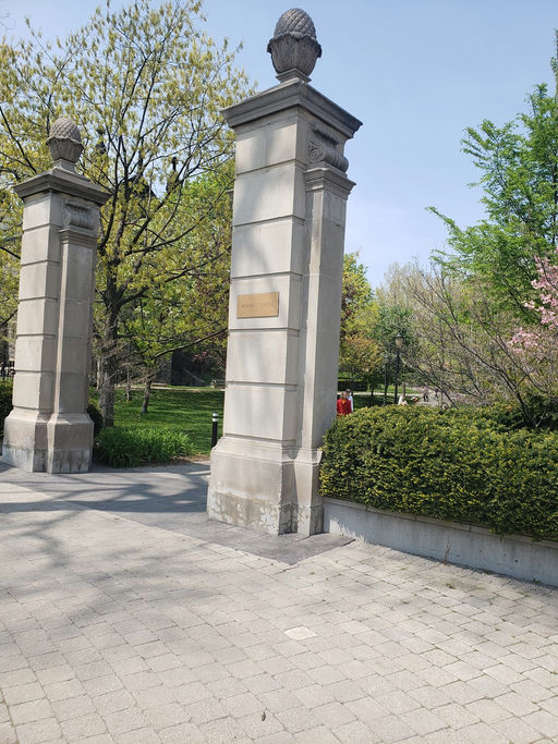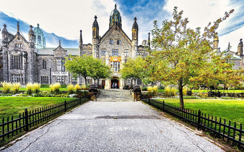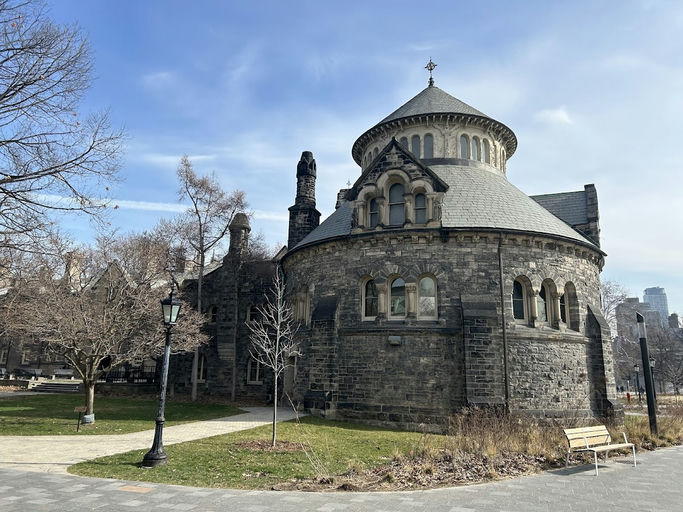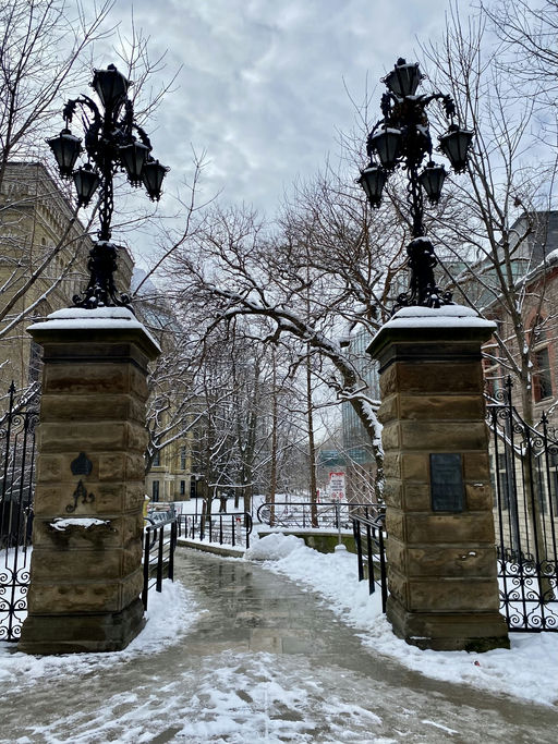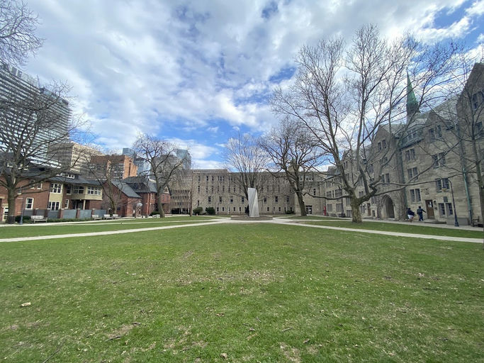 Serene footpath though a landscaped park in the St. George campus of the University of Toronto.