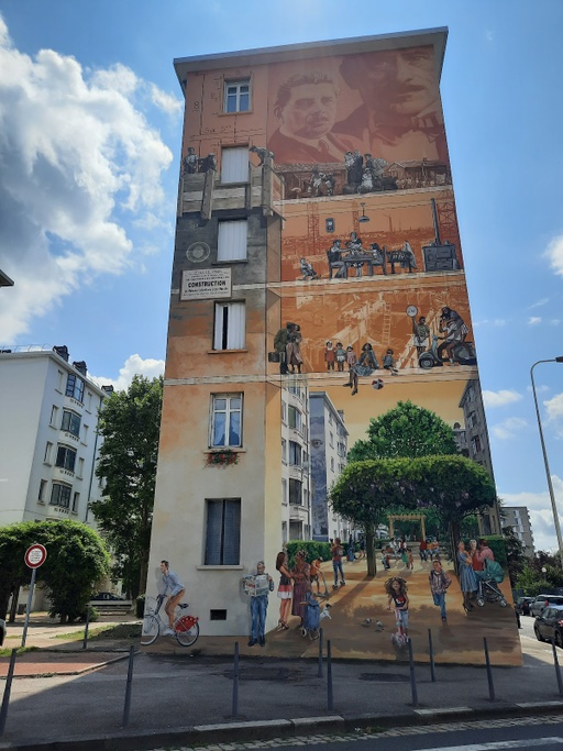 - Massive murals painted on apartment blocks, showing scenes from the architect’s vision and local history.
