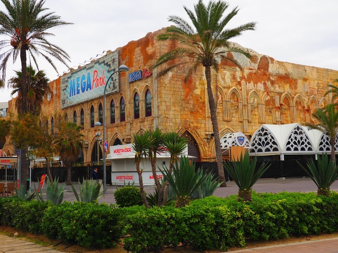 Attraction & event space in a replica city featuring recreated Spanish buildings & landmarks.