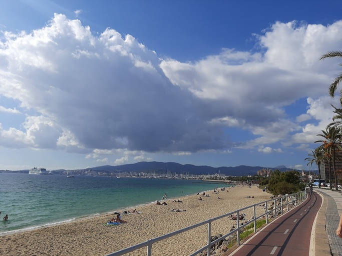 The Catedral de Mallorca looms over this tranquil, tree-lined hangout with benches & a lagoon.